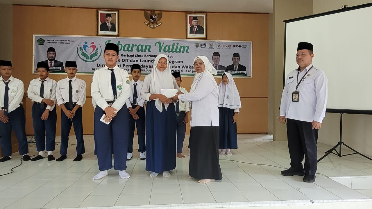 Muaro Jambi (MTsN 1 Muaro Jambi) – Melalui Penyelenggaran Zakat Wakaf Kantor Kementerian Agama (Kemenag) Kabupaten Muaro Jambi, menggelar acara Lebaran Yatim tahun 2024, bertepatan dengan peringatan Idul Yatama atau Hari Raya Yatama setiap tanggal 10 Muharam. Acara ini berlangsung di Aula Kantor Kemenag Kabupaten Muaro Jambi pada Selasa, 16 Juli 2024.