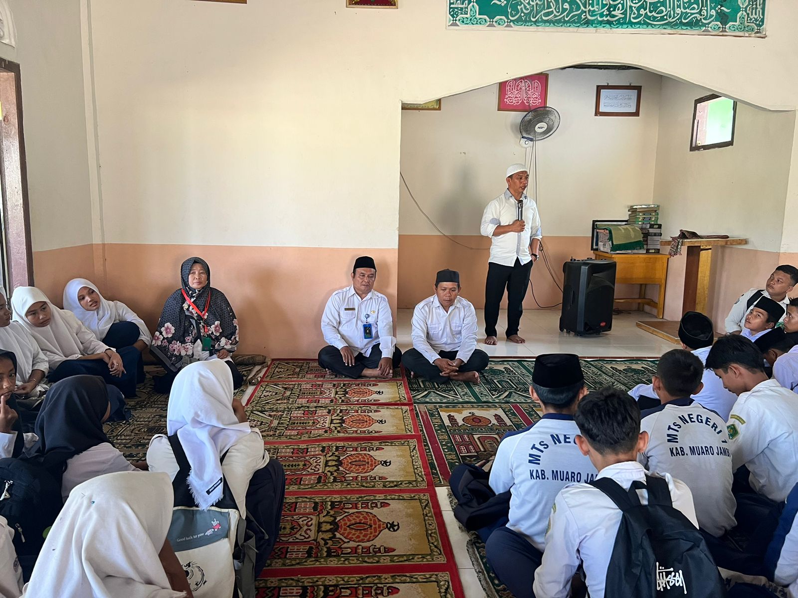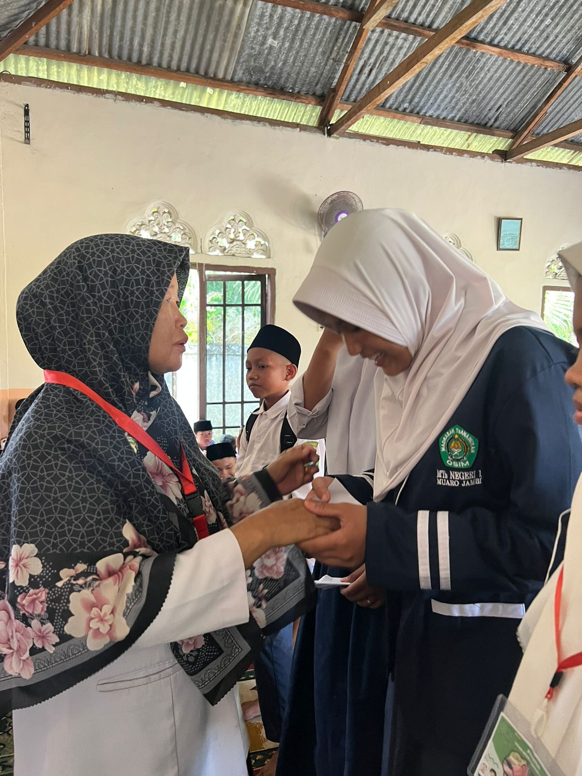 Pada hari Selasa (16/7) 10 Muharram 1446 H, MTsN 1 Muaro Jambi mengadakan Lebaran yatim. Kegiatan Lebaran Yatim diselenggarakan di Musholla setelah sholat zhuhur berjamaah bersama seluruh Guru dan Tenaga kependidikan serta para siswa. Pada kegiatan ini, dihadiri pengawas Kankemenag Muaro Jambi Bapak Makmun, M.Pd yang sebelumnya melaksanakan monev kegiatan MATSAMA di MTsN 1 Muaro Jambi. Kegiatan ini dipimpin pembina keagamaan Ibu Mulyosaroh. Dalam waktu Yang bersamaan, Kepala MTsN 1 Muaro Jambi Ibu Barianti juga sedang mengikuti kegiatan Lebaran Yatim di Kemenag Muaro Jambi dengan membawa 2 siswa Yang menjadi perwakilan dalam kegiatan Lebaran Yatim tersebut. Untuk kegiatan Lebaran Yatim di MTsN 1 Muaro Jambi diberikan santunan kepada 5 siswa/i.