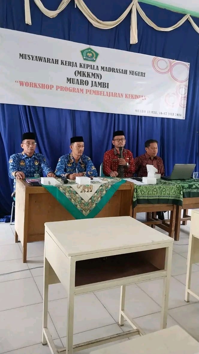 Agenda kegiatan yang dikemas dalam Musyawarah Kerja Kepala Madrasah Negeri (MKKMN) tersebut adalah Workshop Program Pembelajaran Kekinian, dengan menghadirkan Nara Sumber dari Pengawas Kabupaten Muaro Jambi adalah Bapak Alimudin, S.Pd, M.Pd.