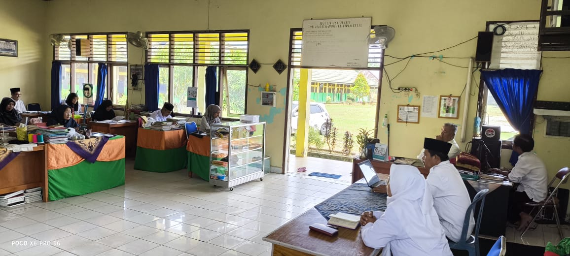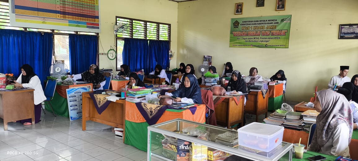 Muaro Jambi (MTsN 1 Muaro Jambi) - Rapat pembinaan dan pembagian tugas (Job deskrpsi) di awal tahun pelajaran 2024/2025 berlangsung di ruang guru dihadiri oleh KTU, seluruh dewan guru dan staf Tata Usaha, Senin (22/7).