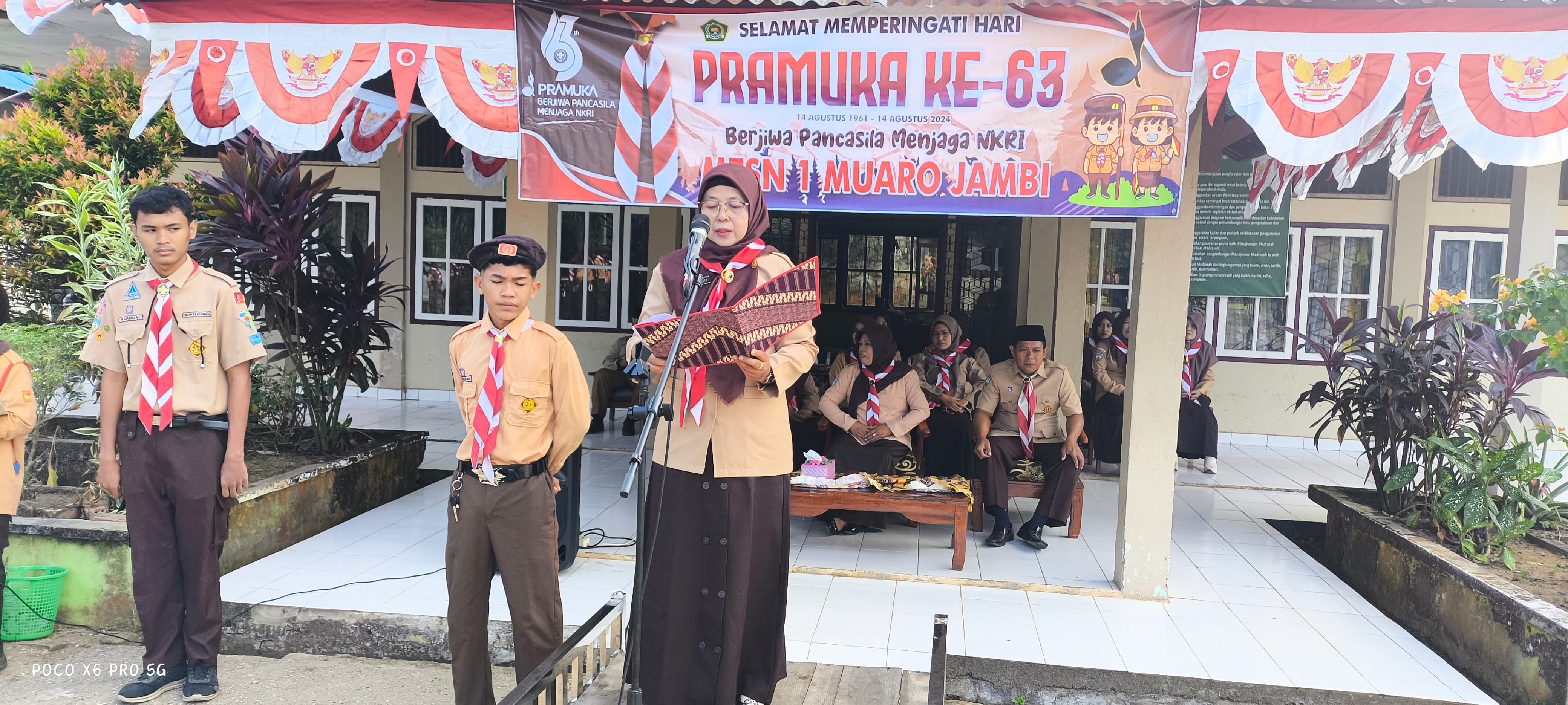 Sehubungan dengan perayaan Hari Pramuka erakan Pramuka Kwartir Nasional telah mengeluarkan pedoman susunan upacara untuk dijadikan acuan dalam peringatan Hari Pramuka yang ke-63 tahun 2024. Berdasarkan pedoman tersebut, salah satu acara pokok dalam upacara Hari Pramuka adalah penyampaian amanat dari pembina upacara. Dalam Hal ini, yang bertindak sebagai pembina upacara adalah Kepala MTsN 1 Muaro Jambi Ibu Barianti.