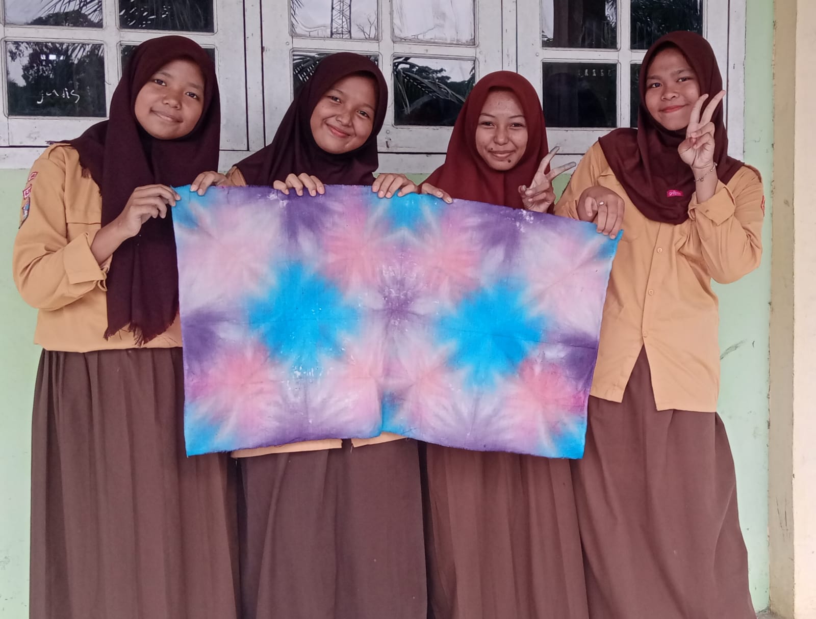 â€Batik jumputan adalah jenis batik yang dikerjakan dengan teknik ikat celup untuk menciptakan gradasi warna yang menarik dengan tujuan melatih imajinasi dan kreatifitas siswa. Kegiatan batik jumputan juga berperan penting dalam membantu siswa agar lebih percaya diri dalam menentukan sesuatu;†jelas Erni.