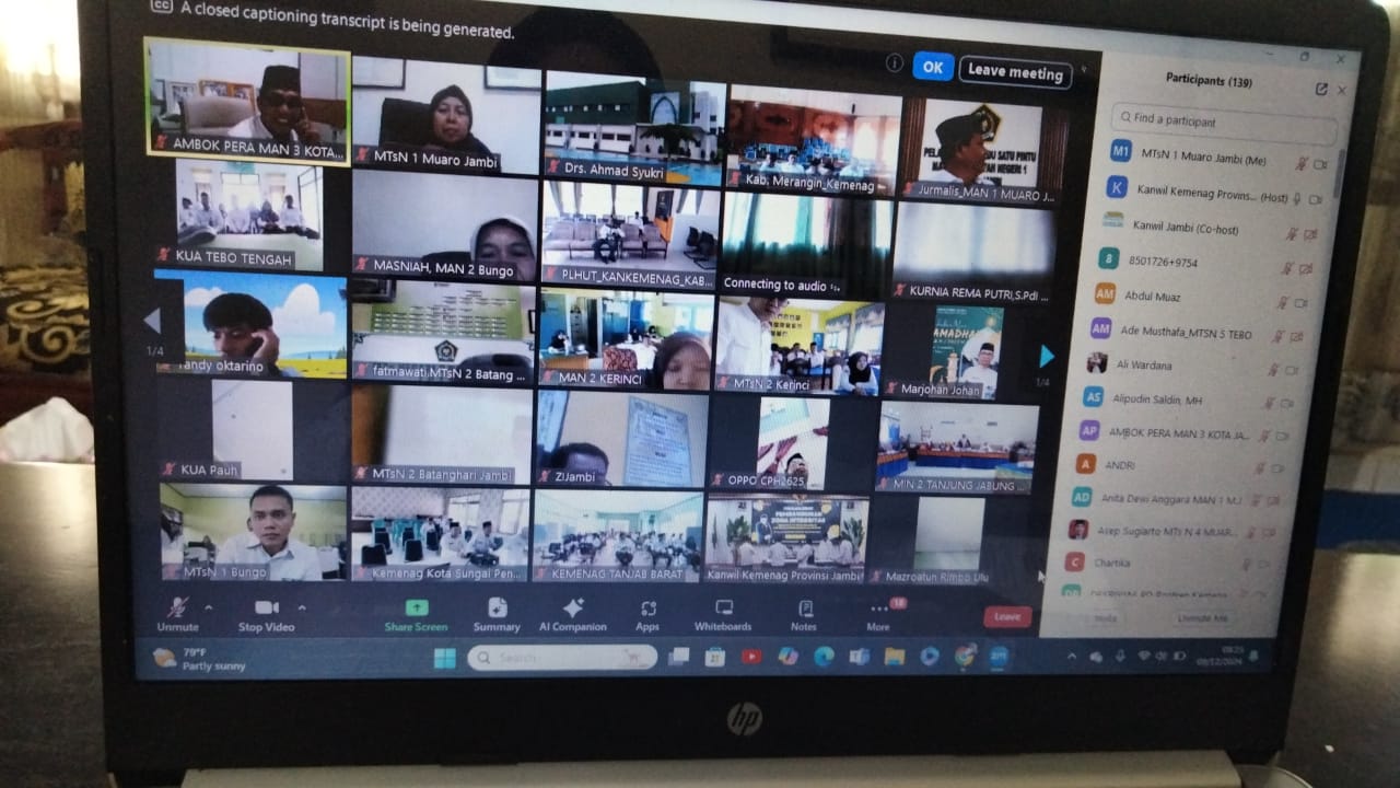 Muaro Jambi-(MTsN 1 Muaro Jambi) – Sesuai undangan yang disampaikan oleh Kepala Kemenag Kab/Kota se-Provinsi Jambi dalam rangka Pembangunan Zona Integritas menuju wilayah Bebas dari Korupsi dan Wilayah Birokrasi Bersih Melayani (WBK dan WBBM) pada Kantor Wilayah Kementerian Agama Provinsi Jambi bahwa seluruh ASN pada kantor Kemenag, MAN dan MTsN di lingkungan masing-masing untuk mengikuti kegiatan Pencanangan dan Penandatanganan Komitmen Bersama Pembangunan Zona Integritas secara virtual/online melalui tautan zoom meeting.
