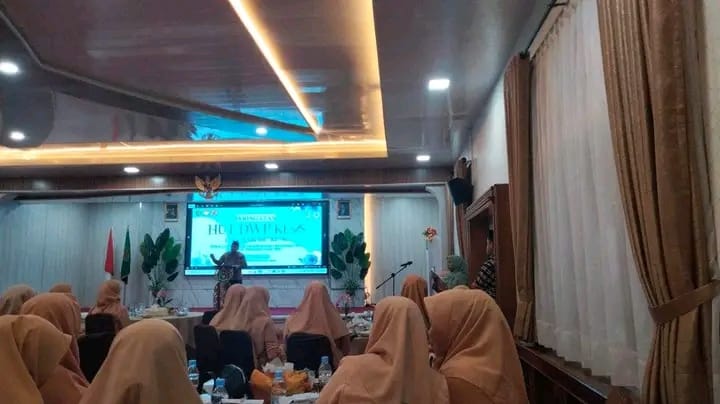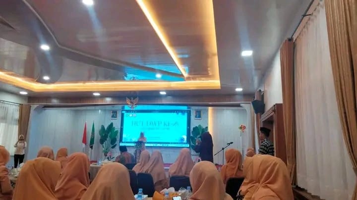 Muaro Jambi (MTsN 1 Muaro Jambi ) – DWP MTsN 1 Muaro Jambi, Dra. Barianti, M.Pd.I menghadiri peringatan Hari Ulang Tahun (HUT) DWP ke-25 dan Hari Ibu Ke-96, di Aula Kantor Wilayah Kementerian Agama Provinsi Jambi, Jum’at (20/12/2024).