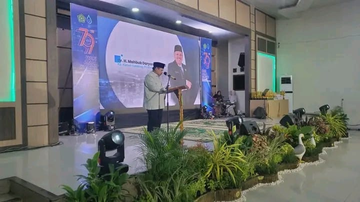 Muaro Jambi (MTsN 1 Muaro Jambi) - Kepala Madrasah Tsanawiyah Negeri ( MTsN 1 Muaro ), Dra. Barianti, M.Pd.I, menghadiri Malam Tasyakuran Hari Amal Bhakti (HAB) ke-79 Kanwil Kementerian Agama (Kemenag) Provinsi Jambi di Gedung Arafah Asrama Haji Kota Baru Jambi, Rabu (8/1/2025).