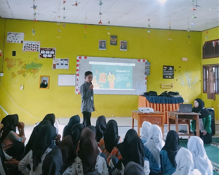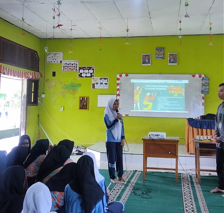 Muaro Jambi (MTsN 1 Muaro Jambi), Kamis (16/1) Mahasiswa/I KKN STAI Ma'arif Jambi melakukan sosialisasi tentang di MTsN 1 Muaro Jambi. Kegiatan ini diadakan di ruang aula MTsN 1 Muaro Jambi dari pukul 11.00-12.00. kegiatan ini diikuti oleh seluruh siswa-siswi kelas IX MTsN 1 Muaro Jambi dan Pengurus inti OSIM MTsN 1 Muaro Jambi. Kegiatan ini bertujuan untuk memberikan pemahaman kepada siswa tentang kepemimpinan dan bagaimana tugas dan cara menjadi pemimpin.