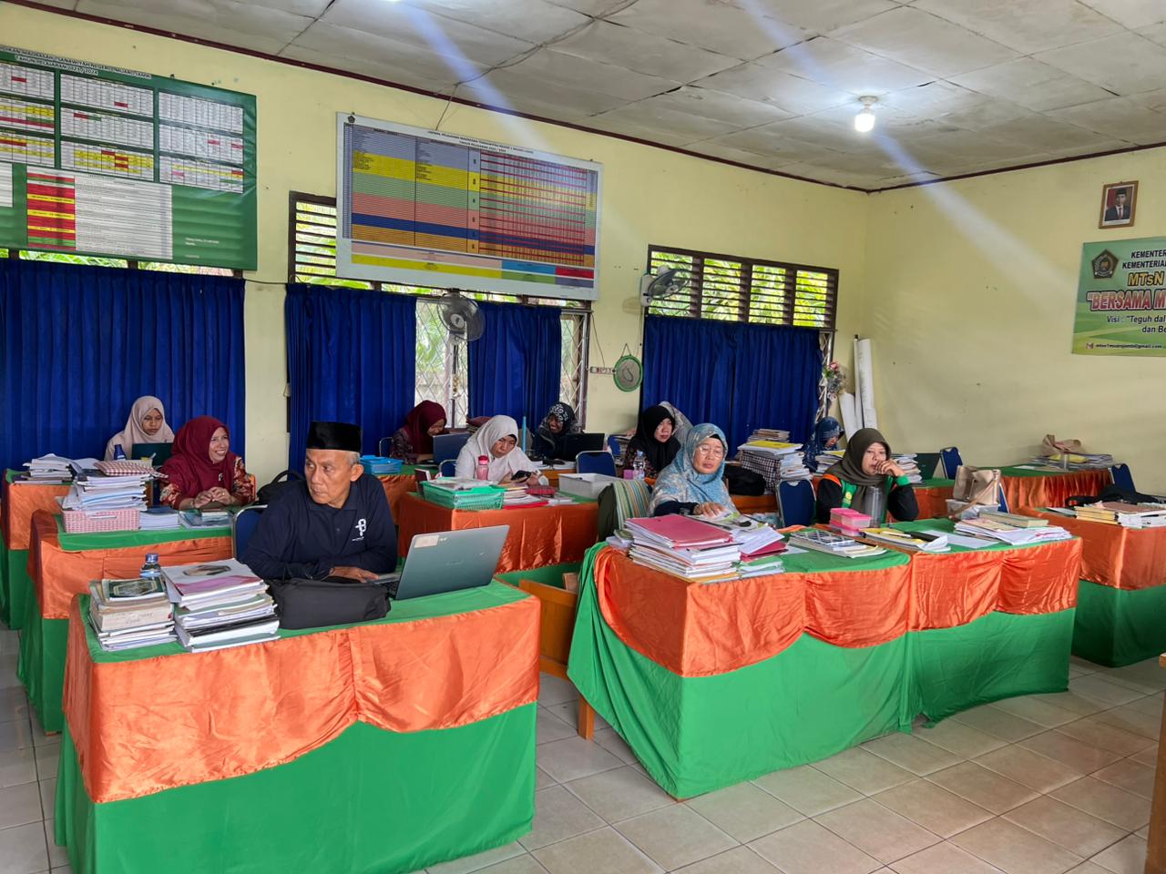 Muaro Jambi (MTsN 1 Muaro Jambi) - Dalam rangka peningkatan mutu dan kwalitas pendidikan di MTsN 1 Muaro Jambi pengawas madrasah bapak DR. M. Sidik, S.Ag.M.Pd melakukan pendampingan satuan pendidikan dalam rangka memetakan komitmen perubahan ke arah yang lebih baik di MTsN 1 Muaro Jambi.