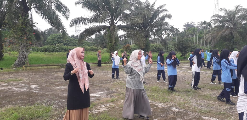 Muaro Jambi (MTsN 1 Muaro Jambi ) – Seluruh warga MTsN 1 Muaro Jambi melaksanakan senam pagi bersama yang berlangsung di halaman madrasah pada Kamis (29/01). Kegiatan ini bertujuan Untuk mendukung proses pembelajaran yang sehat, memberikan penyegaran, serta untuk merilekskan pikiran siswa sebelum menerima pembelajaran di dalam ruang kelas.