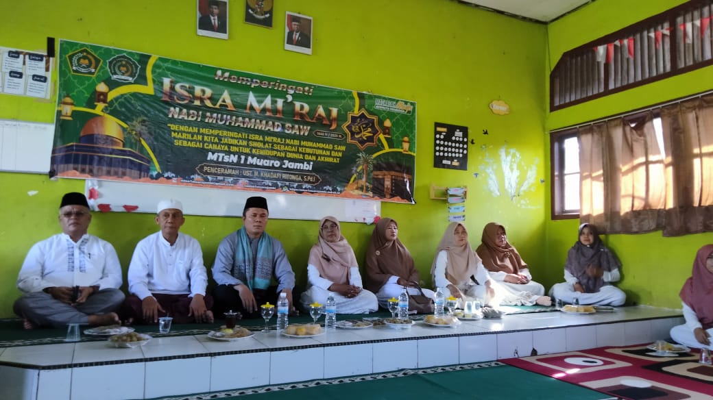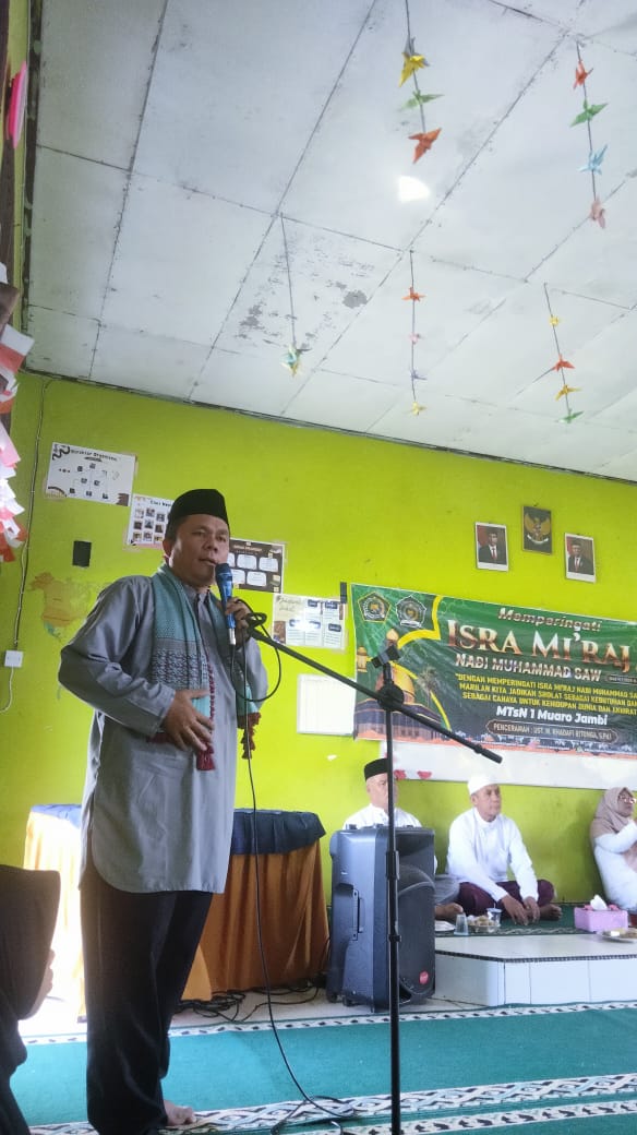 Muaro Jambi (MTsN 1 Muaro Jambi) – Isra Mi’raj merupakan salah satu peristiwa penting dalam sejarah Islam. Dalam peristiwa ini, Nabi Muhammad SAW mendapatkan perintah dari Allah SWT untuk melaksanakan sholat lima waktu. MTsN 1 Muaro Jambi memperingati Iacara isra’ Mi’raj secara sederhana 1446 H pada Jumat (31/1/2025) pagi di Aula madrasah.