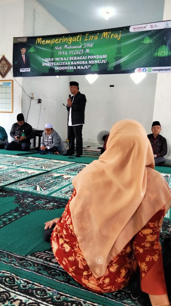 Muaro Jambi (MTsN 1 Muaro Jambi) - Kepala MTsN 1 Muaro Jambi menghadiri kegiatan peringatan Isra' Miraj Nabi Muhammad SAW 1446 H/2025 M yang diselenggarakan oleh Kantor Kementerian Agama Kabupaten Muaro Jambi, Rabu (5/2/2025), bertempat di Aula Kantor Kementerian Agama Kabupaten Muaro Jambi.