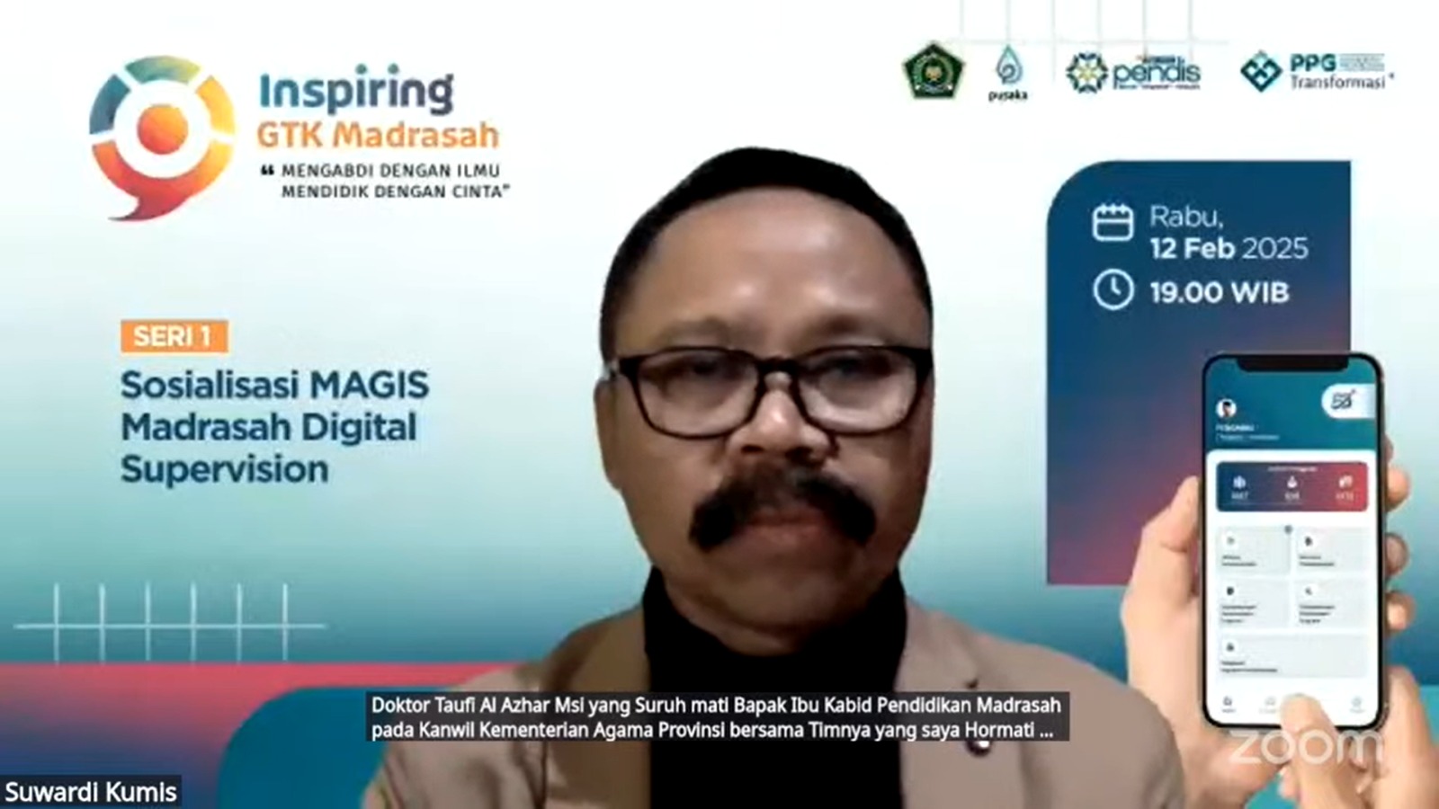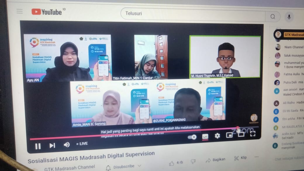 Muaro Jambi, (MTsN 1 Muaro Jambi) – Kementerian Agama Republik Indonesia terus mendorong transformasi digital dalam sistem pengawasan pendidikan madrasah melalui penerapan Madrasah Governance Information System (MAGIS). Sebagai upaya efektivitas dan efisiensi pengawasan madrasah, Direktorat Jenderal Pendidikan Islam Kemenag RI bersama Pokjawas Nasional melaksanakan sosialisasi penggunaan aplikasi GTK MAGIS secara daring via zoom meeting dan live streaming you tube, dengan tema tema "Mengabdi dengan ilmu, mendidik dengan Cinta". Dr Thobib Al Asyhar, S.Ag., M.Si selaku Direktur GTK Direktorat Jenderal Pendidikan Islam Kemenag RI Rabu (12/02/2025)