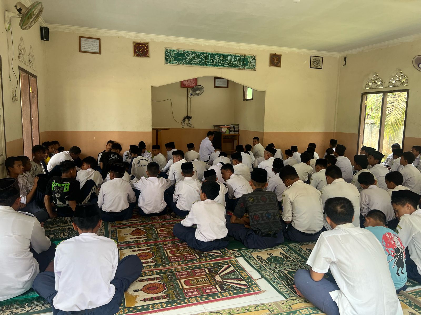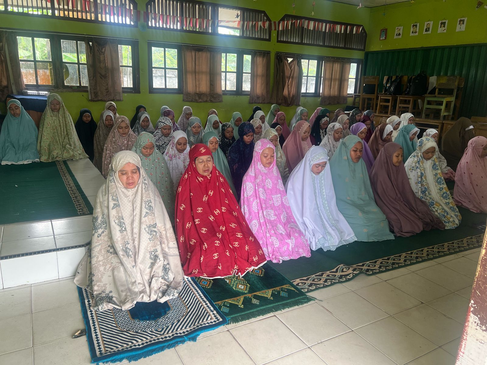 Muaro Jambi (MTsN 1 Muaro Jambi) – Pembiasaan sholat zhuhur berjama’ah di MTsN 1 Muaro Jambi dilaksanakan di Mushala bagi siswa laki-laki dan di Aula bagi siswa prempuan. Selain siswa, guru dan tenaga kependidikan juga ikut shalat berjamaah. Seorang guru adalah role model dan motivasi bagi siswa terutama dalam hal positif sangat diharapkan sekali,Rabu (18/2/2025).