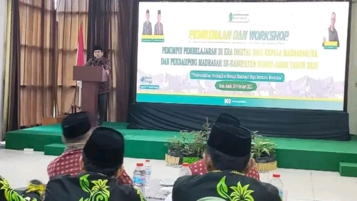 Muaro Jambi (MTsN 1 Muaro Jambi) - Kepala MTsN 1 Muaro Jambi, Dra. Barianti. M.Pd.I mengikuti Pembinaan dan Workshop Pemimpin Pembelajaran di Era Digital yang diselenggarakan Kantor Kementerian Agama Kabupaten Muaro Jambi bekerjasama dengan Penerbit Erlangga di Hotel Golden Havest, Kamis (20/02/2025).