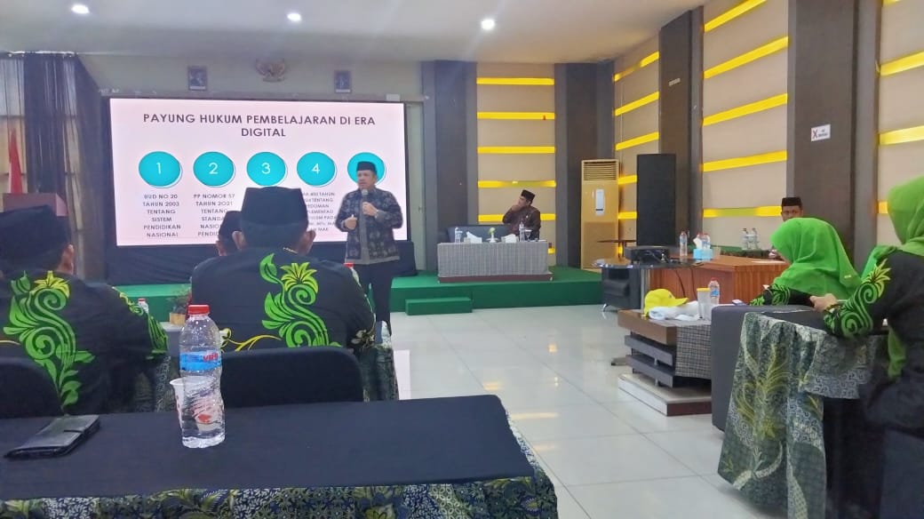 Pada kesempatan ini sebagai Nara Sumber adalah Bapak DR. H. Mahbub Daryanto, M.Pd selaku KaKanwil Kemenag Provinsi Jambi menyampaikan materi Kebijakan Kemenag Pembelajaran di Era Digital dan Bapak DR. Sofyan, M.Pd Fasilitator dari Kemendasmen RI menyampaikan materi “Menjadi Pemimpin Pembelajaran di Era Digital “.