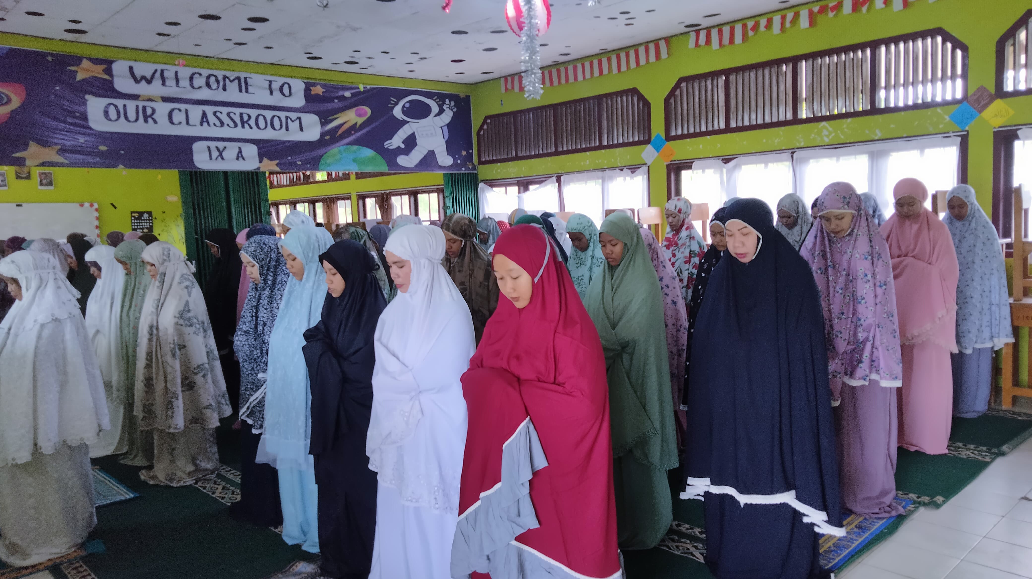 Muaro Jambi (MTsN 1 Muaro Jambi) – Dra. BARIANTI, M.Pd.I selaku Kepala MTsN 1 Muaro Jambi membuka Pesantren Kilat Ramadhan 1446 H dengan Tadarus al Quran selama 1 Jam oleh semua Guru dan TU serta siswa/i. Kamis, 06 Maret 2025. Kemudian agenda dilanjutkan dengan Sholat Dhuha bersama sebagai salah satu wahana pembentukan karakter keimanan/ ketaqwaan dan akhlak mulia, serta mengajak siswa-siswi untuk beribadah dengan baik dibulan suci ini.