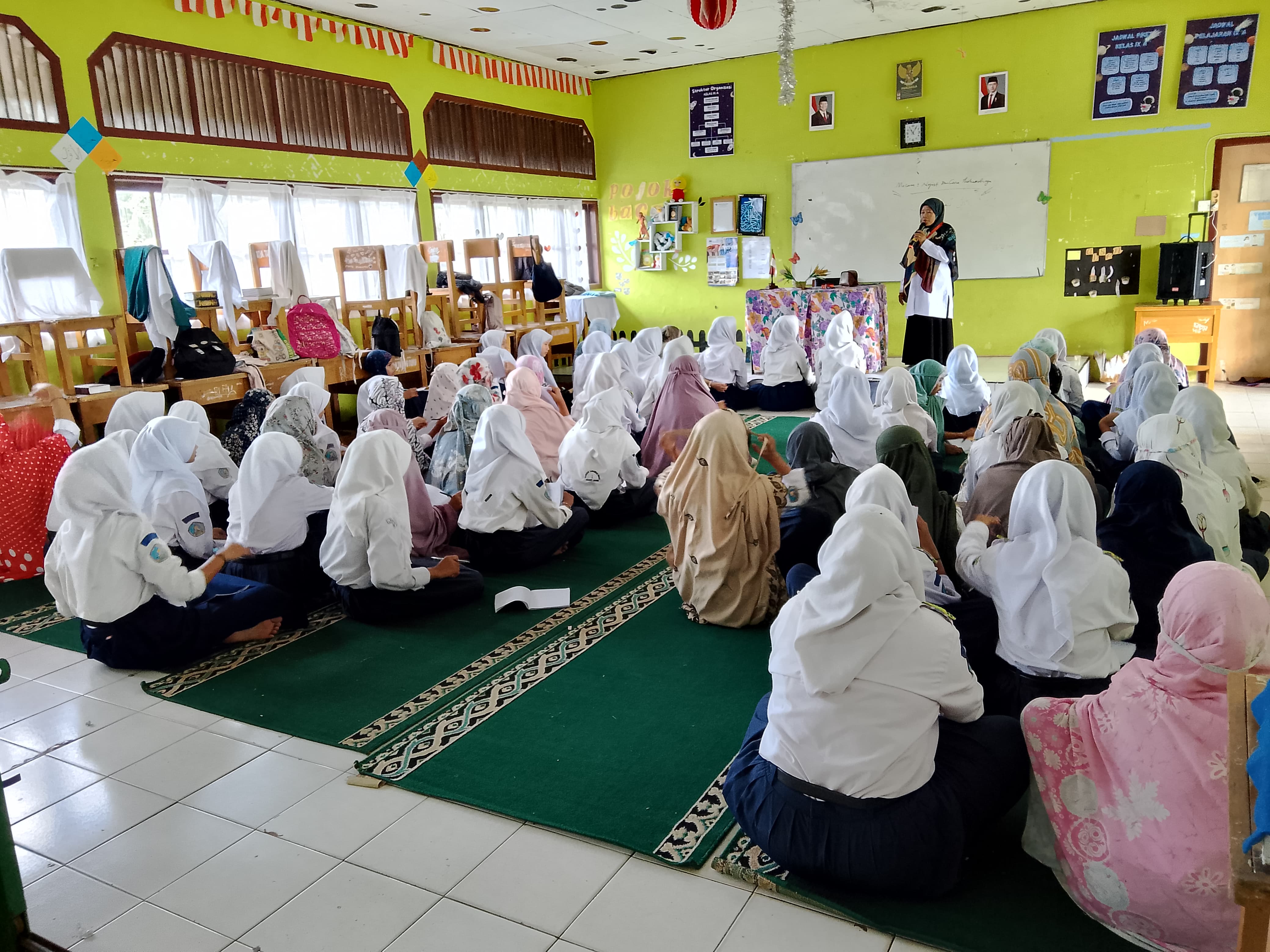 Di ruang Aula, Dra. Mulyosaroh menyampaikan materi mengenai macam-macam najis dan cara taharahnya. Para santriwati yang mendengar materi ini terlihat sangat antusias. Terdengar dari beberapa pertanyaan yang dilontarkan oleh santriwati.