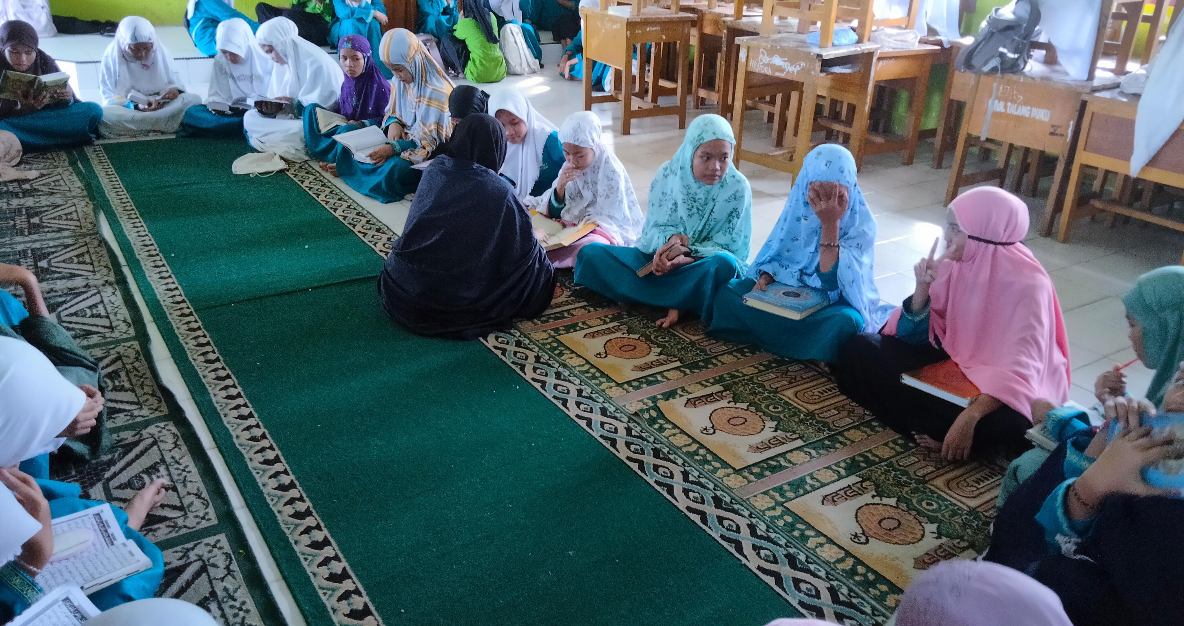 Kegiatan yang dikoordinir oleh guru koordinator bidang keagamaan Dra. Mulyosaroh dan Bapak Zakuan, S.Pd ini dilaksanakan di Aula untuk siswa putri, sedangkan untuk siswa putra dilaksanakan di Aula setelah sholat dhuha berjamaah. Setiap siswa dan guru mendapat bagian 1 juz untuk dibaca dalam kegiatan tadarus tersebut.
