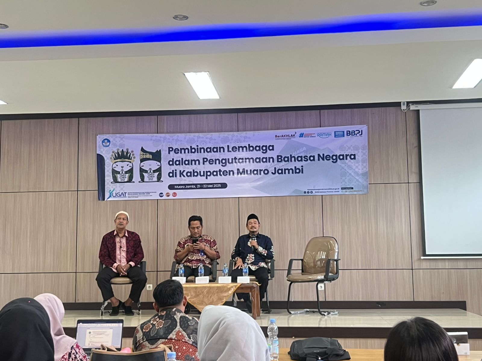 Muaro Jambi (MTsN 1 Muaro Jambi) – Menindaklanjuti hasil koordinasi Pengutamaan Bahasa Negara di Kabupaten Muaro Jambi, maka Tim Balai Bahasa Provinsi Jambi mengundang 2 (dua) orang pegawai MTsN 1 Muaro Jambi. Dua orang pegawai yang mengikuti kegiatan tersebut adalan Nopriyadi dan Pinni okta Piyerda, S.H. Adapun kegiatan yang akan dilakukan adalah Pembinaan Lembaga dalam Pengutamaan Bahasa Negara di Kabupaten Muaro Jambi Tahun 2025. Pelaksanaan kegiatan selama 2 (dua) hari pada tanggal 21-22 Mei 2025 di Ruang Ridan Kantor Bupati Muaro Jambi.