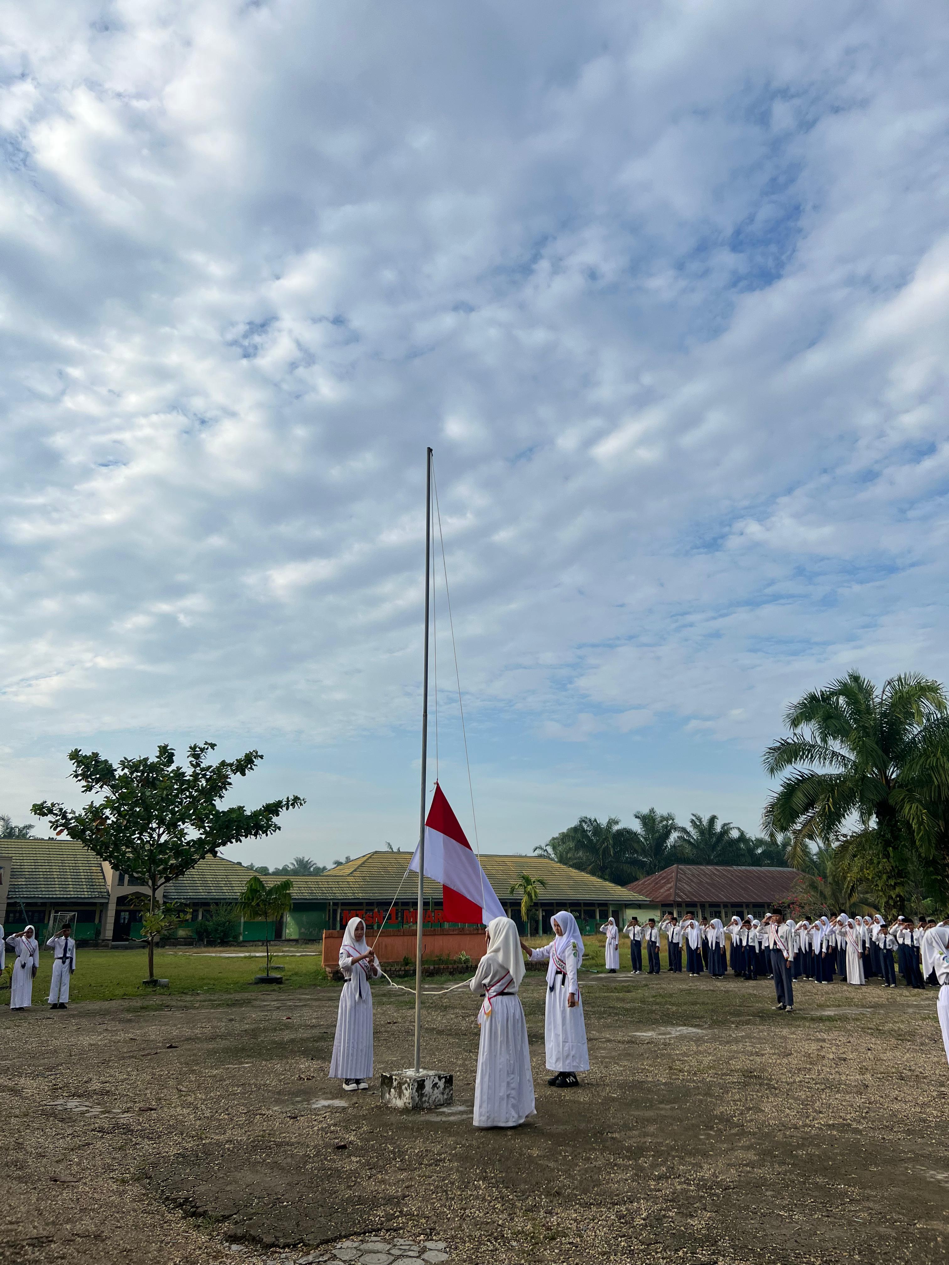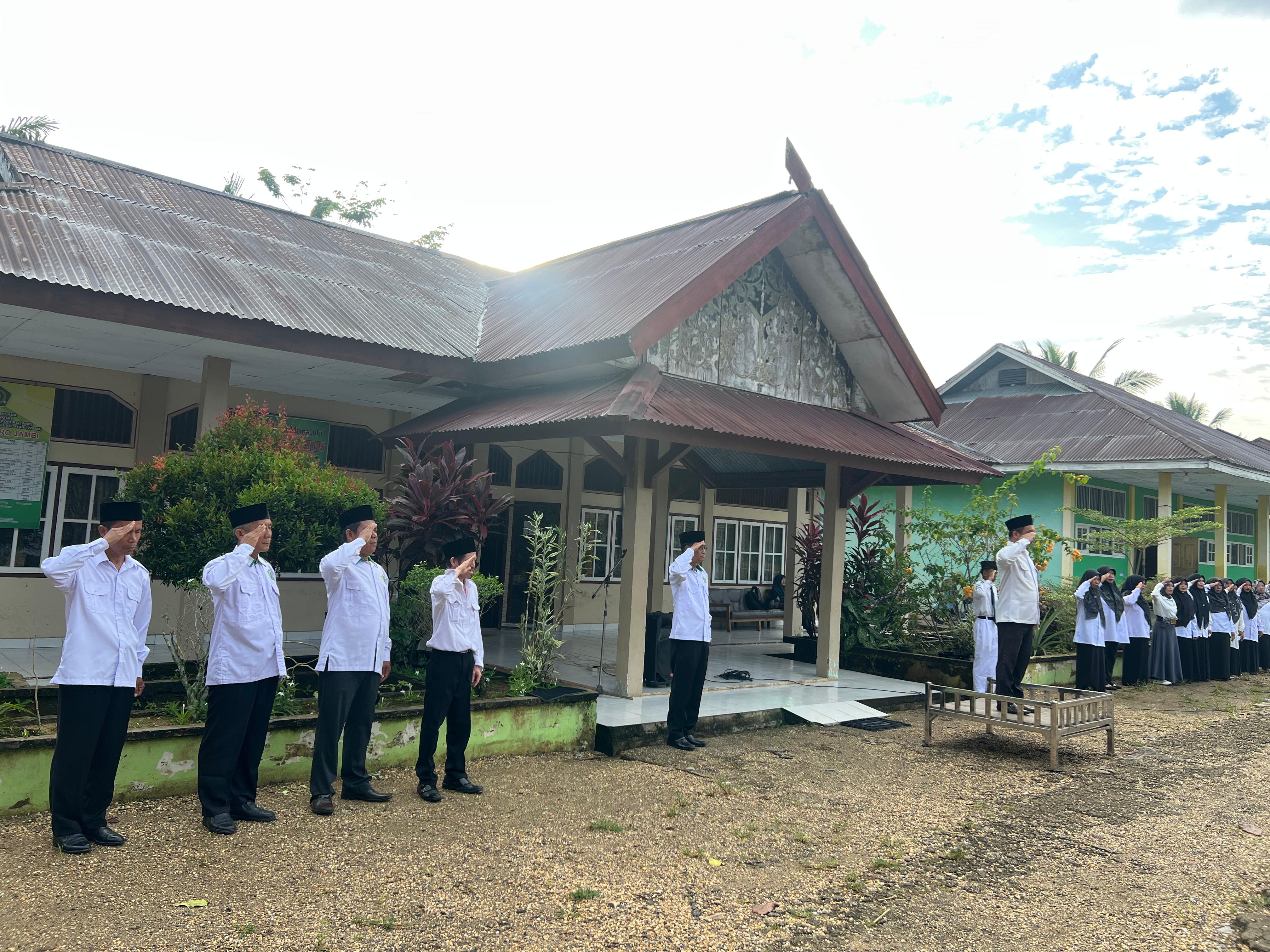 Muaro Jambi (MTsN 1 Muaro Jambi) - Senin, 4 Agustus 2025, telah dilaksanakan upacara bendera rutin di Lapangan MTsN 1 Muaro Jambi. Upacara dimulai tepat pukul 07.00 WIB dengan tertib dan khidmat. Sebagai petugas upacara kali ini adalah kelas 9 MTsN 1 Muaro Jambi dibawah asuhan walikelas, Cane Pefilenti, S.Pd. Bertindak sebagai pembina upacara adalah Bapak Munajad, S.Pd., selaku waka Kesiswaan yang dalam amanatnya menyampaikan pesan mengenai lebih tinggi adab dari pada ilmu.
