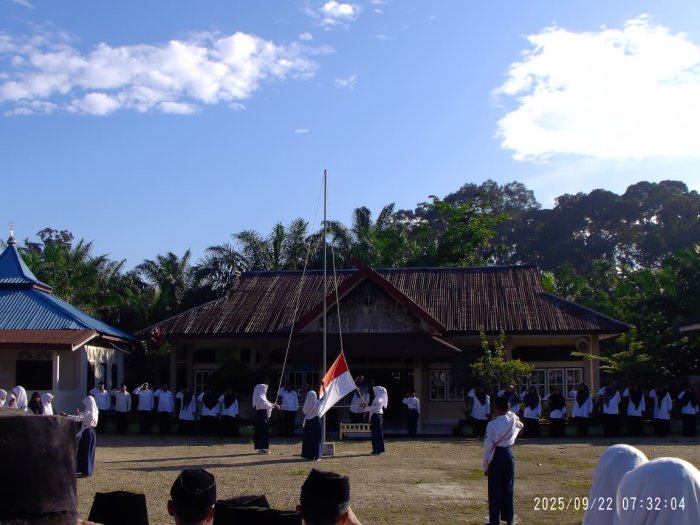 Talang Duku - Upacara bendera di MTsN 1 Muaro Jambi berlangsung dengan tertib, khidmat, dan lancar pada Senin, 22 September 2025. Kegiatan rutin ini diikuti oleh seluruh siswa dan guru di halaman madrasah. Petugas upacara kali ini berasal dari kelas VII C sebagai walikelasnya adalah ibu Liba, S.Pd, yang menjalankan tugasnya dengan baik.