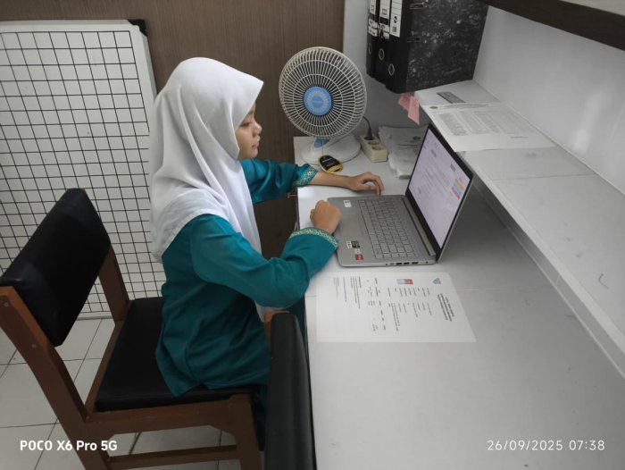 Talang Duku, Jumat (26 September 2025) — Menjelang pelaksanaan Olimpiade Madrasah Indonesia (OMI) tingkat Provinsi Jambi, siswa MTsN 1 Muaro Jambi melakukan persiapan intensif dengan mengikuti uji coba secara daring. OMI tingkat provinsi ini dijadwalkan berlangsung pada 3 Oktober 2025 di MAN 2 Muaro Jambi.