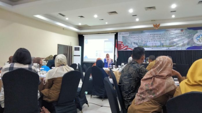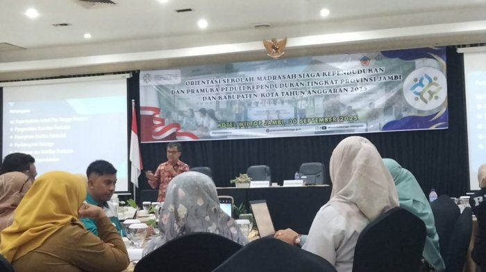 Kepala MTsN 1 Muaro Jambi, Dra. Barianti, M.Pd.I, menghadiri Orientasi Sekolah/Madrasah Siaga Kependudukan (SSK/MSK) dan Pramuka Peduli Kependudukan tingkat Provinsi Jambi dan Kabupaten/Kota. Kegiatan ini berlangsung pada Selasa, 30 September 2025, di Hotel Wiltop Jambi.