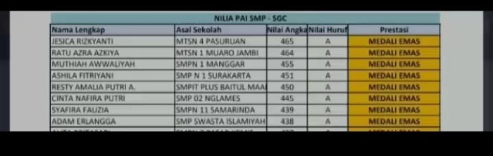 Talang Duku – Prestasi membanggakan kembali diraih oleh siswa MTsN 1 Muaro Jambi. Ratu Azra Azkiya berhasil meraih dua medali emas dalam ajang nasional Smart Generation Championship secara mandiri, khususnya pada kategori Olimpiade Berintegritas. Keberhasilan ini menjadi bukti nyata bahwa siswa MTsN 1 Muaro Jambi mampu bersaing secara intelektual dan spiritual di tingkat nasional.