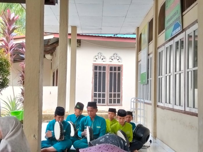 Talang Duku - Kesenian hadroh merupakan salah satu seni musik Islami yang cukup populer di kalangan umat Islam, termasuk di lingkungan pelajar. Hadroh dikenal sebagai seni musik 'terbang' yang memiliki irama menghentak, rancak, dan variatif, sehingga banyak diminati oleh siswa di MTsN 1 Muaro Jambi.