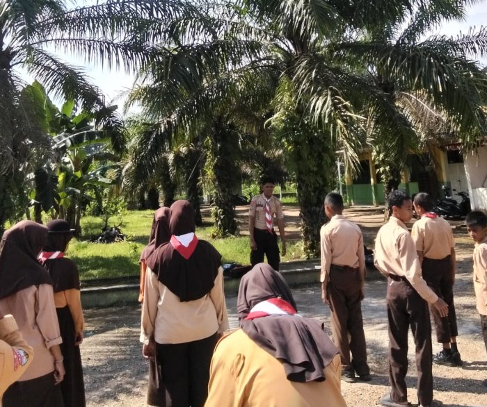 Talang Duku - Anggota ekstrakurikuler Pramuka MTsN 1 Muaro Jambi kembali melaksanakan latihan rutin yang digelar setiap hari Jumat di halaman sekolah. Pada latihan kali ini, materi yang diberikan adalah Latihan Ketangkasan Baris-Berbaris (LKBB). Para peserta tampak antusias mengikuti berbagai latihan dasar kepramukaan yang dipandu oleh pelatih Neti Herawati dan Idris Marzuki.