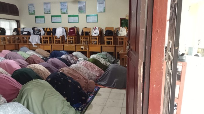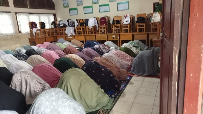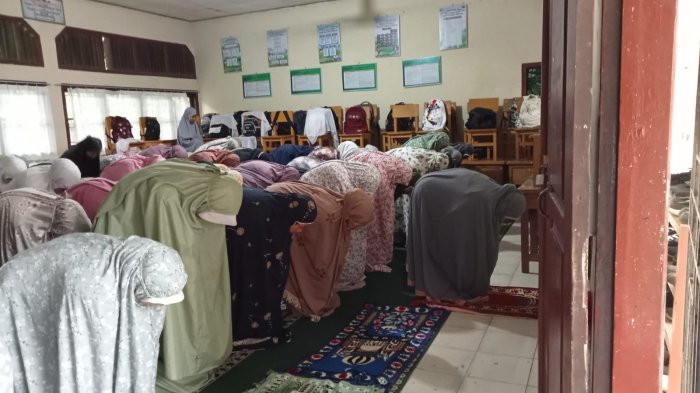 Talang Duku - Dra. Mulyosaroh, Pembina Keagamaan di MTsN 1 Muaro Jambi, menegaskan pentingnya pelaksanaan shalat berjamaah dalam kehidupan sehari-hari siswa. Salah satu bentuk implementasinya adalah kegiatan shalat Zuhur berjamaah yang rutin dilaksanakan di kelas VII A setiap hari Senin hingga Kamis, tepat setelah istirahat kedua usai kegiatan belajar mengajar.