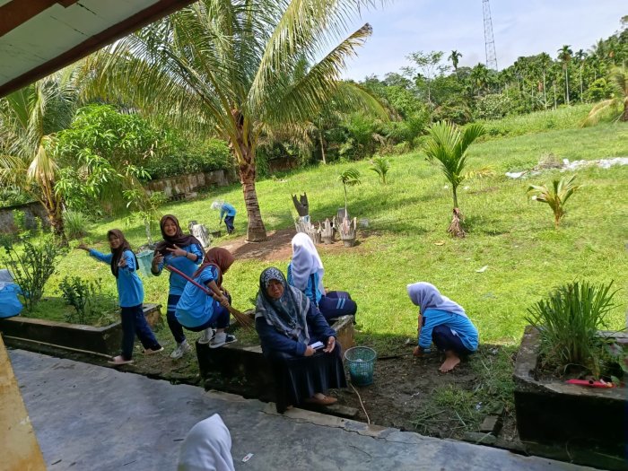 Talang Duku - Siti Fatimah, S.Pd.I, selaku wali kelas VIII B, mendampingi para siswa kelasnya dalam kegiatan gotong royong membersihkan lingkungan kelas pada Kamis, 6 November 2025. Kegiatan ini berlangsung di lingkungan madrasah dan melibatkan seluruh siswa kelas VIII B yang tampak antusias mengikuti arahan dari Siti Fatimah.