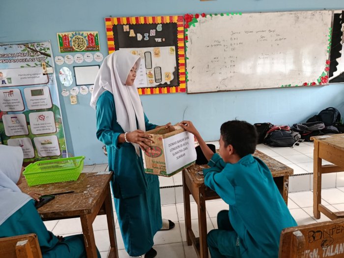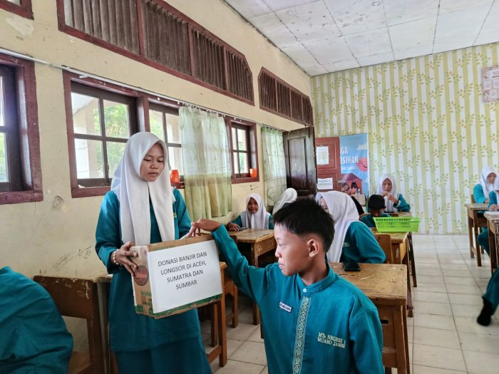Pada Jumat, 5 Desember 2025, Organisasi Siswa Intra Madrasah (OSIM) MTsN 1 Muaro Jambi melaksanakan kegiatan penggalangan donasi sebagai bentuk aksi kemanusiaan. Donasi ini ditujukan untuk membantu korban banjir yang melanda sejumlah wilayah di Sumatra. Kegiatan tersebut melibatkan seluruh warga madrasah, mulai dari guru, siswa, staf tata usaha, hingga masyarakat sekitar. Inisiatif ini bertujuan untuk meringankan beban para korban sekaligus menumbuhkan rasa kepedulian sosial di lingkungan madrasah.
