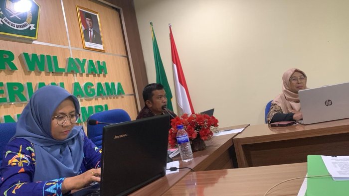 Kepala madrasah dari berbagai daerah di Provinsi Jambi mengikuti Rapat Koordinasi (Rakor) Penilaian Mandiri Pembangunan Zona Integritas (PMPZI) Tahun 2025 dan persiapan penilaian pendahuluan PMPZI Kementerian Agama Tahun 2026. Kegiatan ini berlangsung pada Kamis, 4 Desember 2025, di Aula Kantor Wilayah (Kanwil) Kementerian Agama Provinsi Jambi.