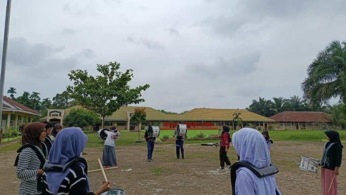 Selain itu, Efrida Hairani, S.Pd., selaku pembina OSIM, dan Zakaria turut memantau serta mendukung jalannya latihan. Mereka juga bekerja sama dengan Abdul Gafar, pelatih drum band lainnya, untuk memastikan proses latihan berjalan lancar. Tim pelatih dan pembina berupaya menelusuri serta memanfaatkan perlengkapan alat musik dan kostum lama yang masih layak pakai, sehingga dapat menunjang penampilan drum band ke depannya.