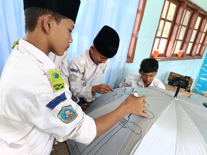 Muaro Jambi, 27 Januari 2026, Pembelajaran seni budaya di MTsN 1 Muaro Jambi menghadirkan inovasi baru dengan mengadakan kegiatan melukis di atas media payung pada Selasa, 27 Januari 2026. Sebanyak 60 siswa dari kelas VII hingga IX terlibat dalam kegiatan ini, yang bertujuan untuk memperkenalkan nilai-nilai budaya lokal sekaligus mengembangkan kreativitas mereka.