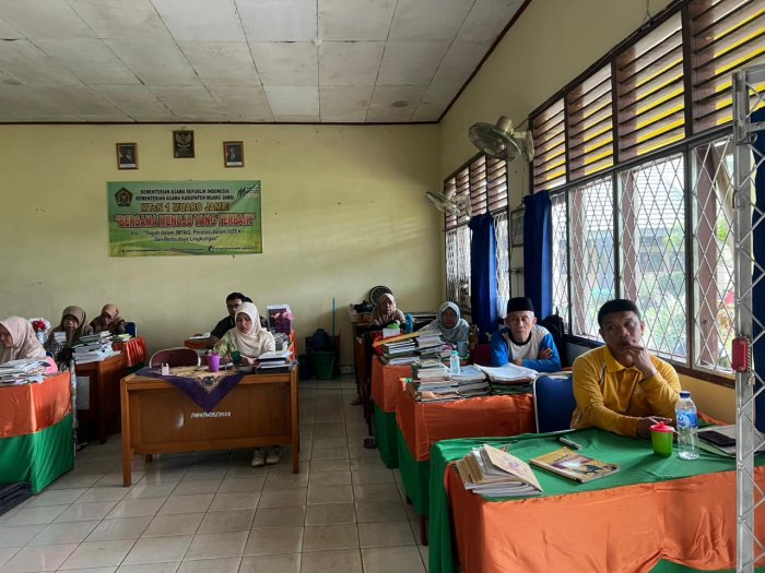 MUARO JAMBI, Guru-guru Madrasah Tsanawiyah Negeri (MTsN) 1 Muaro Jambi menggelar sosialisasi rapat koordinasi (rakor) dan pembagian tugas mengajar untuk semester genap Tahun Ajaran 2025/2026. Kegiatan ini berlangsung di Ruang Majelis Guru pada Kamis, 29 Januari 2026, dan bertujuan untuk menyelaraskan langkah serta memastikan kelancaran proses pembelajaran di madrasah tersebut.