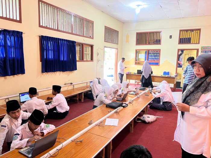 Muaro Jambi, Kepala Madrasah Tsanawiyah Negeri (MTsN) 1 Muaro Jambi melakukan pemantauan langsung terhadap pelaksanaan gladi Tes Kemampuan Akademik (TKA) di lingkungan madrasah pada Senin, 16 Maret 2026. Kegiatan gladi ini merupakan simulasi persiapan sebelum pelaksanaan TKA yang sesungguhnya dan berjalan dengan sukses, tertib, serta sesuai dengan rencana yang telah disusun oleh panitia.